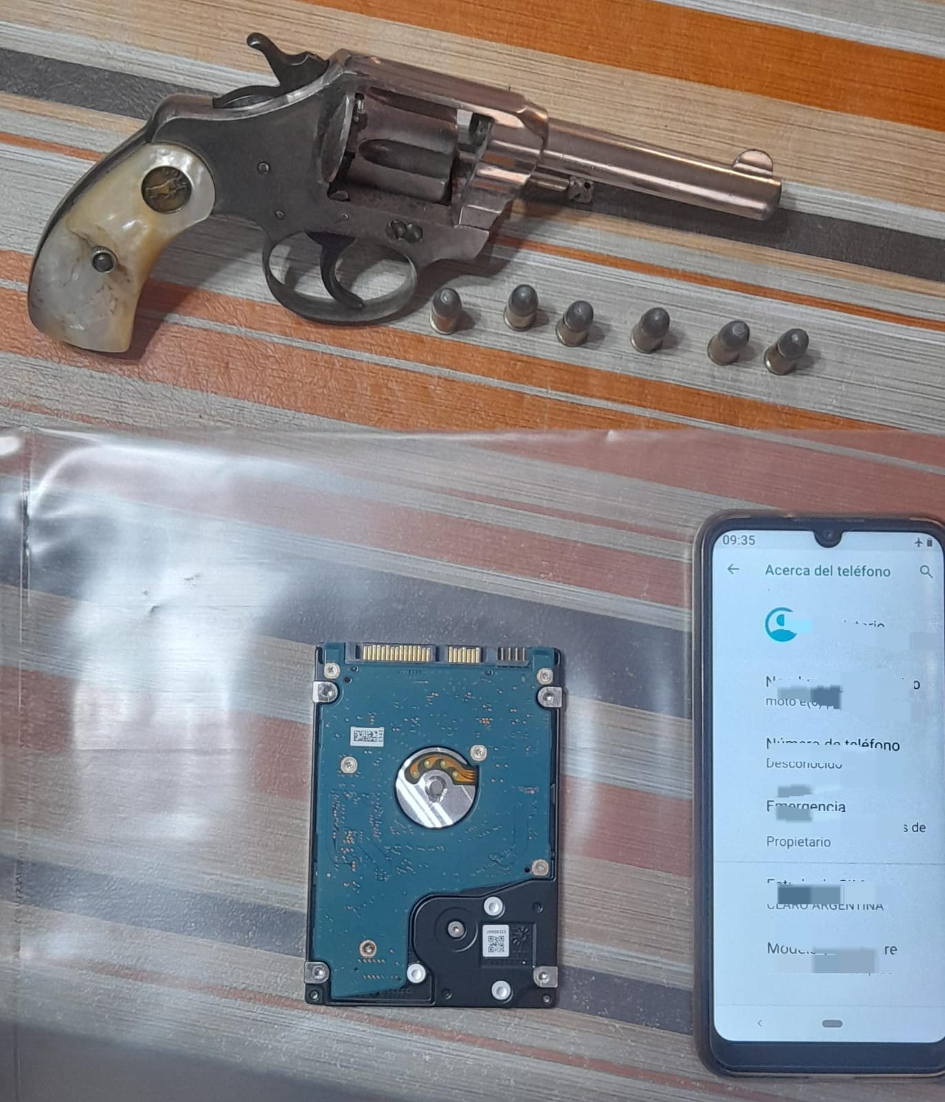 2) Av. San Agustín, de barrio Media Luna, donde realizan el *SECUESTRO* de (1) teléfono celular, documentación conteniendo información relevante para la causa que se investiga, una (01) memoria de disco rígido interno, un (01) revolver, calibre 32 y seis (06) municiones.