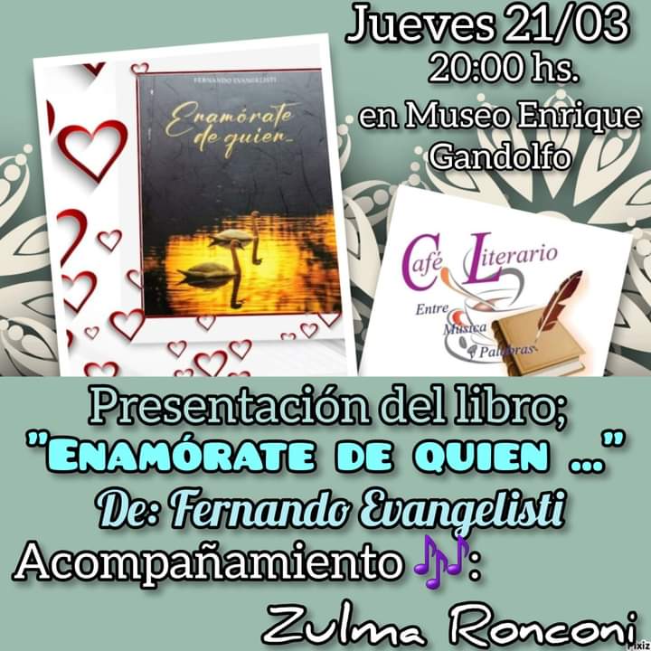El escritor estará presentando este jueves su tercer obra, en este caso un libro de bolsillo que contiene "50 frases para construir un vínculo nutricio y saludable, incluyendo el de pareja pero también los vínculos familiares y de amigos", expresó el escritor. Además señaló que más que una presentación "se tratará de una conversación", y que todo el que vaya al Museo Enrique Gandolfo mañana a las 20 se va a encontrar con la posibilidad de conversar acerca del contenido del libro.