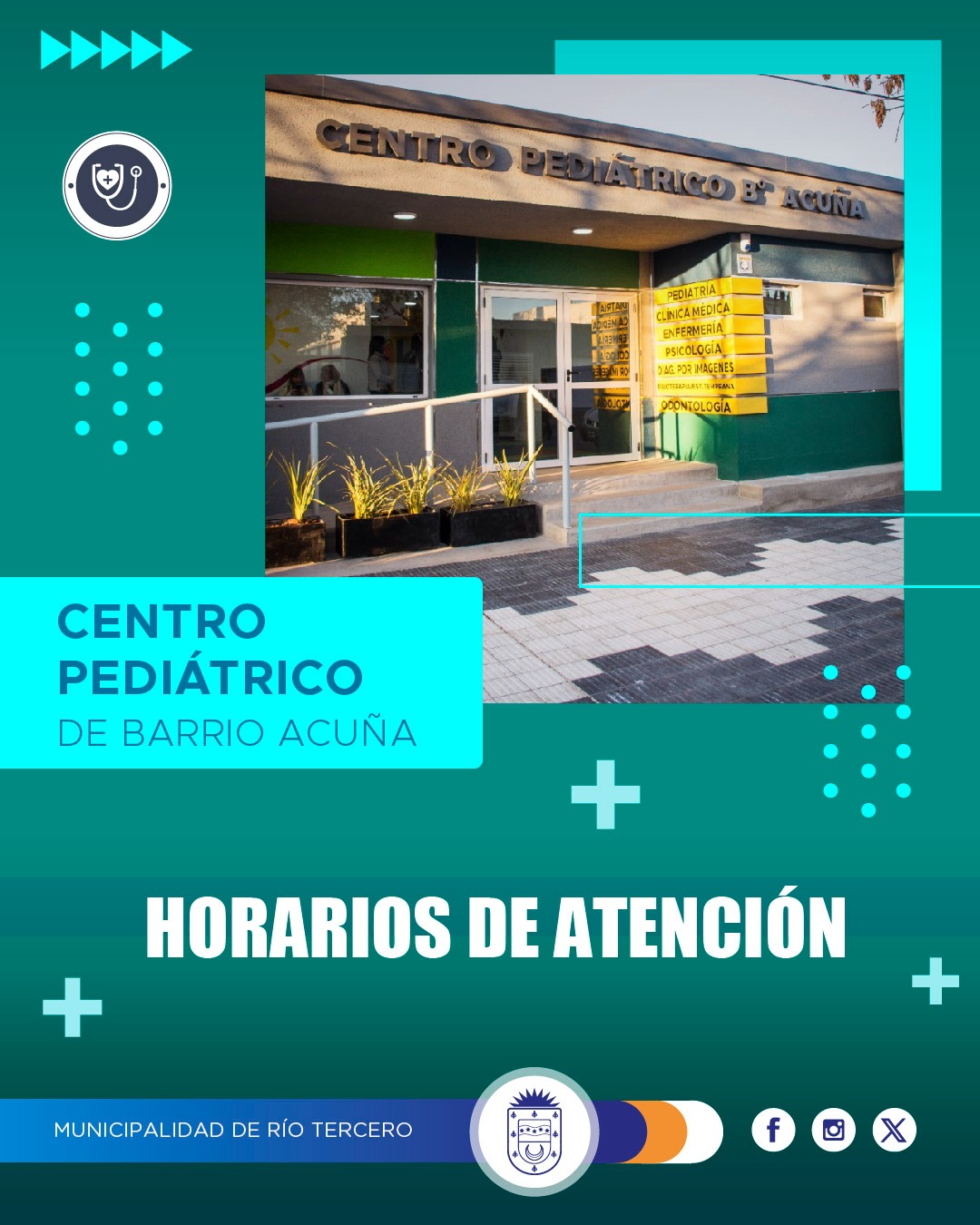 Debido a la situación sanitaria actual con el Dengue, solicitamos a todos los pacientes febriles sin síntomas graves (vómitos persistentes, dolor abdominal intenso y/o signos de sangrado) que acudan al Centro Pediátrico de Barrio Acuña para una evaluación clínica en los siguientes días y horarios: