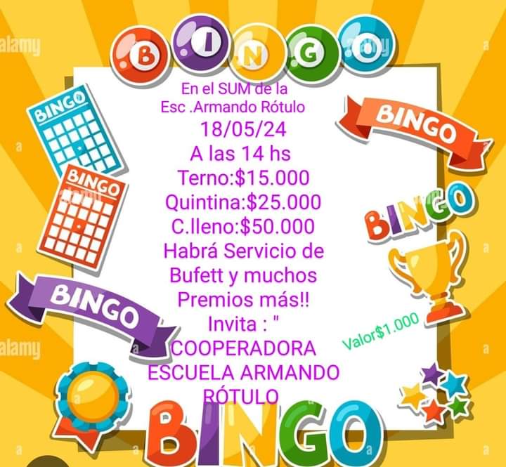 Así se expresó la vice directora de la Escuela Armando Rótulo de barrio Cerino acerca del Bingo que organizan para este sábado a partir de las 14 y que pondrá en juego 80 mil pesos. "La idea es tener un plus para las necesidades inmediatas que van surgiendo, y para eso trabaja la Cooperadora de la escuela, siempre generando eventos para recaudar fondos", expresó Ceballos.