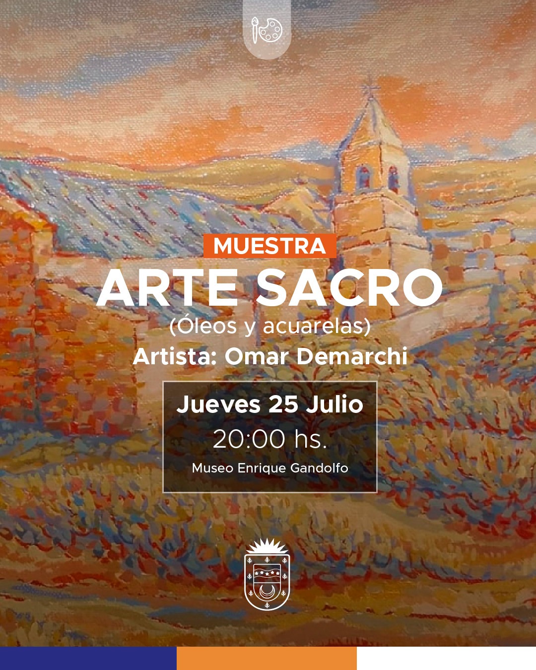 El artista plástico inaugurará su obra "Arte Sacro" esta noche a las 20 en el Museo Enrique Gandolfo. Demarchi señaló que "se trata de un conjunto de trabajos desde 1975 a la actualidad y elegimos algunas de las obras", agregando que quienes la visiten podrán disfrutar de óleos, acuarelas y acrílicos, como así también técnicas mixtas. Demarchi expresó que espera "que estas obras puedan transmitir un mensaje a cada uno" y que "la obra establece un diálogo con quien la observa y tenemos que esperar que la obra nos hable". La muestra estará en exposición hasta el 30 de agosto en el MEG para que los riotercerenses puedan disfrutar de la misma.