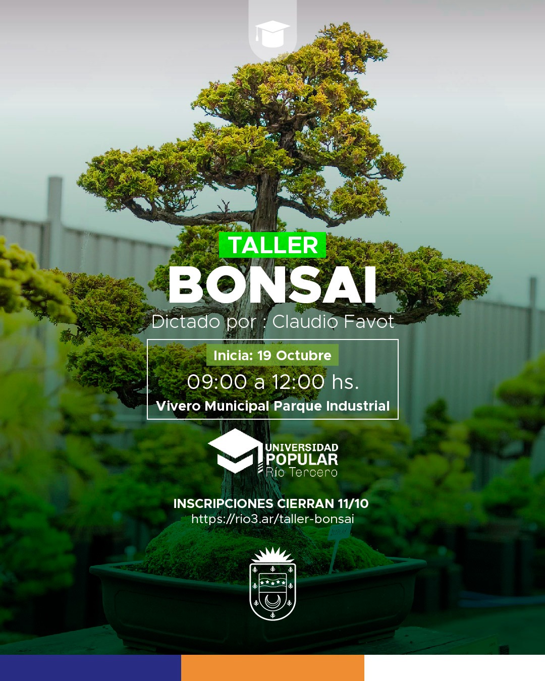 👉 Desde el municipio abrieron las inscripciones para ser parte de un nuevo 🌳 Taller de Bonsai que comenzará el sábado 19 de octubre a las 🕘 09:00 hs en el Vivero Municipal. El taller será dictado por Claudio Favot y está dirigido a todas las personas interesadas en aprender y perfeccionar esta disciplina.