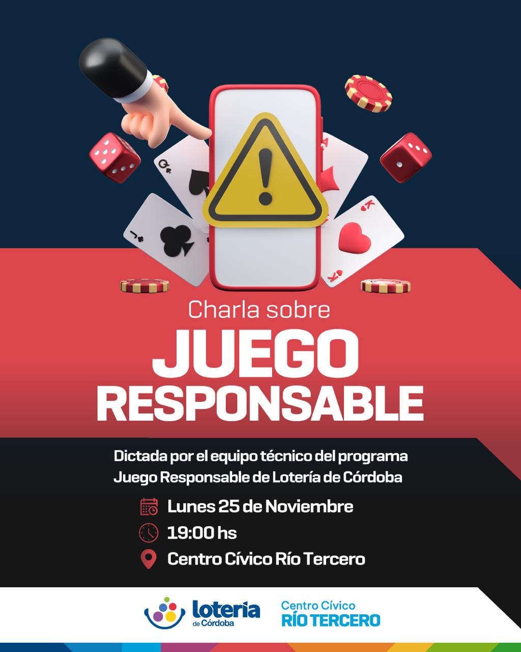 El director del Centro Cívico señaló además que "es preocupante porque involucra a menores y en muchos casos termina en tremendas consecuencias". Teniendo en cuenta esta difícil realidad el próximo lunes se dictará una charla sobre Juego Responsable, que estará a cargo del equipo técnico de Lotería se Córdoba. La misma se desarrollará a partir de las 19 en el Centro Cívico, San Martín 255, es de acceso libre y no requiere inscripción previa.