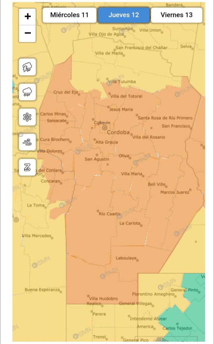El Servicio Meteorológico Nacional emitió un alerta naranja por fuertes tormentas en gran parte del territorio cordobés.
