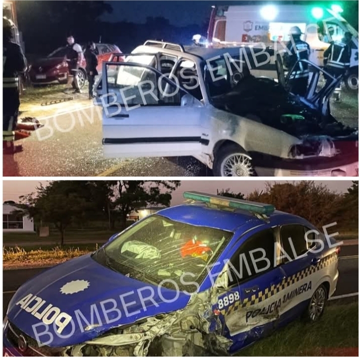 Según el parte oficial de Bomberos Voluntarios de Embalse, un Volkswagen Quantum, que transitaba en dirección Norte-Sur, colisionó con el móvil policial que circulaba en sentido contrario. En el Quantum viajaban dos personas, una de las cuales sufrió heridas de consideración y quedó atrapada en el vehículo, lo que requirió el trabajo de los bomberos para realizar un corte parcial del automóvil y permitir su liberación. El herido fue trasladado de urgencia al centro asistencial por personal médico.