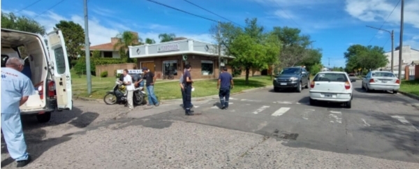 Ayer a las10:35 horas, en la intersección de calles Rastreador Fournier y San Pedro, se produjo un siniestro vial entre un vehículo marca FIAT modelo PALIO conducido por un masculino mayor de edad, y una motocicleta marca ZANELLA 110 c.c. al comando de una femenina de 27 años de edad. A raíz del impacto, resultó lesionada la conductora del rodado menor, siendo trasladada al hospital local por traumatismos en miembros inferiores.