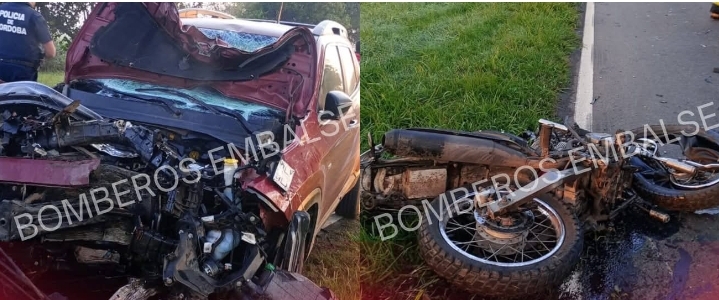 Siendo las 07: 05 Hs, se recibe un pedido de alarma por accidente vehicular sobre ruta Embalse - Almafuerte ( Recta de las moras), en el lugar colisionan una motocicleta Zanella 125 cc, conducida por una femenina mayor de edad y una camioneta Fiat Toro en la cual lo hacía un masculino mayor de edad. Ambas personas residentes en nuestra localidad; producto del fuerte impacto la femenina pierde la vida en el lugar, y el masculino es derivado a centro médico local. Trabajó en el lugar una Dotación de Bomberos Embalse, Policía Local, Servicio médico e Inspección municipal.