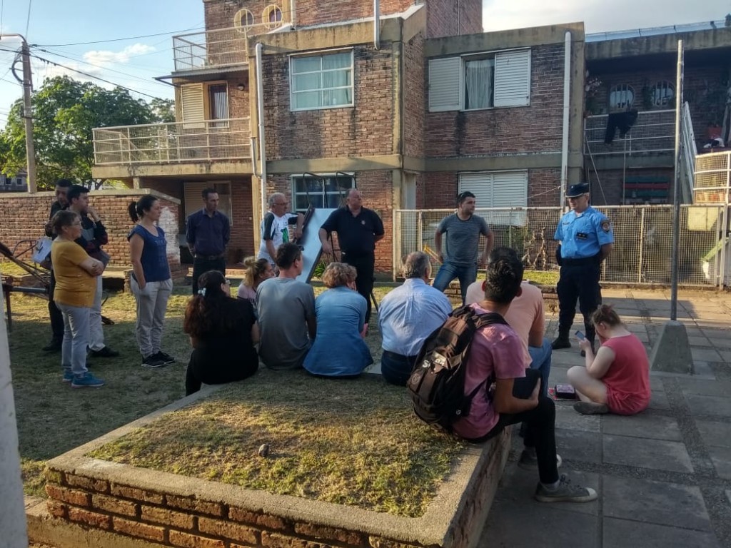 En la plaza de Barrio Petroquímica (Las Violetas), se llevó a cabo reunión con vecinos, en la misma estuvieron presentes el *Crío. Fabián Valeiro a cargo de la Cría. Río Tercero*, *Of. Insp. Luciano Carnero a/c de la Div. Invest.*, y Personal de la Municipalidad de Río Tercero Diego Carincci (Seg. Munic.), Hermes Mari a cargo de Defensa Civil y Daniel Rosales a cargo de coordinación vecinal, a fin de tratar los siguientes temas: seguridad domiciliaria, prevención y concientización de hechos delictuales, alarmas comunitarias, cámaras de seguridad, la importancia del compromiso del vecino en llamar a la policía, formar grupo de vecinos conectados, alcances legales del Código de Convivencia, mercado negro de elementos producidos por hechos delictivos, consumo y comercialización de droga, denuncia anónima al número de la F.P.A., problemas entre vecinos, prevención y consejos útiles.