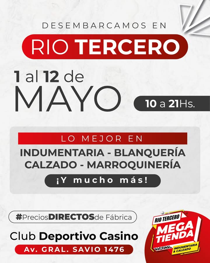 La ciudad de Río Tercero es sede de una nueva edición de la Mega Feria Nacional, un evento comercial de gran magnitud que estará presente hasta el 12 de mayo en el Club Casino. En diálogo con Radio Urbana, Gustavo Arce, responsable de la iniciativa, destacó la excelente respuesta del público desde el primer día, impulsada por la variedad, calidad y los precios accesibles de los productos ofrecidos.