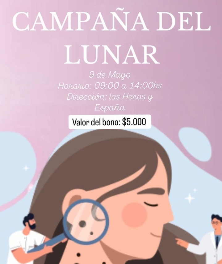Además, anunció la Campaña del Lunar, que se llevará a cabo el viernes 9 de mayo desde las 9 hasta las 14 h en la sede de VolCEC. Participarán dos dermatólogas, y la atención será por orden de llegada. Aunque se denomina así, la campaña también incluye consulta por cualquier afección de piel, con un bono contribución de $5000.