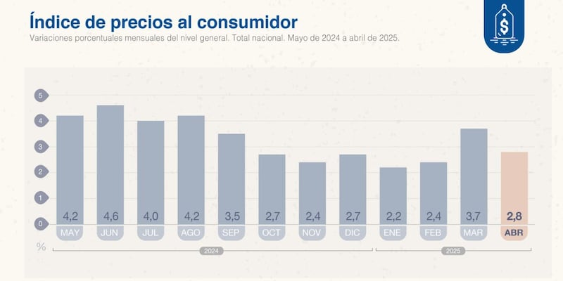 La inflación de abril 2025 fue del 2,8%, según el Indec, tras el levantamiento del cepo cambiario.