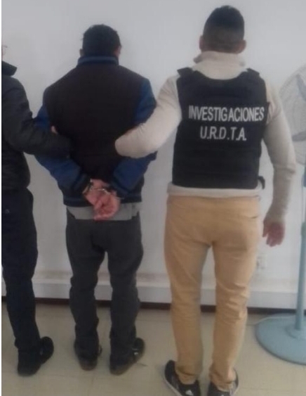 Ayer a las 12.00 horas, en calle 25 de Mayo esquina Pasaje Vucetich se procede a la detención de un hombre de 40 años de edad, por supuesto autor de los delitos de Lesiones Leves Calificadas, Desobediencia a la Autoridad y Violación de Domicilio.