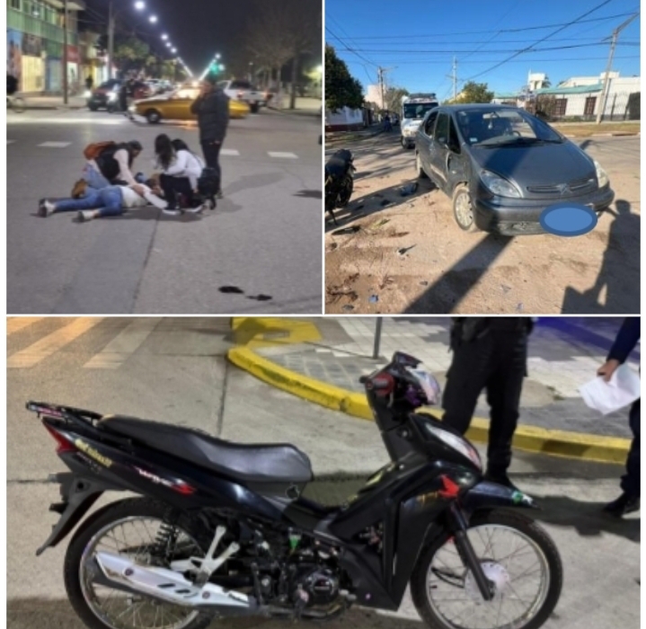 A las 19:30, en Av. San MartÃn y Alberdi, una Toyota Hilux impactó con una moto Corven Energy de 110 c.c. conducida por una mujer de 50 años, quien también debió ser asistida en el hospital local.