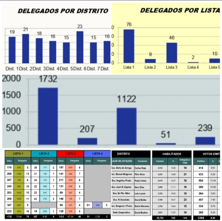 La mayor cantidad de delegados se eligió en el Distrito 6 (Escuela Escalada), con 23 representantes, seguido por el Distrito 2, con 21.
