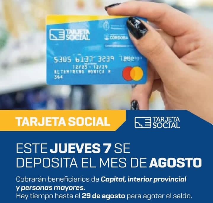 El Ministerio de Desarrollo Social y Promoción del Empleo informa que este jueves 7 de agosto se acreditará el monto del mes en curso a beneficiarios de la Tarjeta Social.