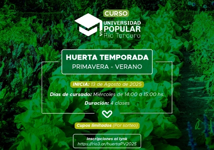 El Vivero Municipal de Río Tercero, a cargo de Claudio Favot, anunció la realización de un nuevo curso de huerta primavera-verano, que comenzará el próximo 13 de agosto. La propuesta busca fomentar la producción propia de alimentos, promover hábitos saludables y ofrecer un espacio de encuentro y bienestar para vecinos de todas las edades.