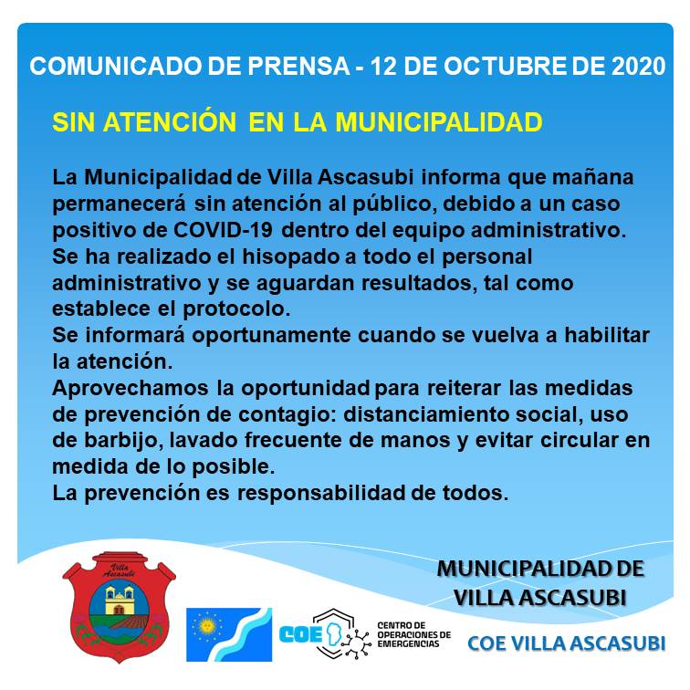 *INFORME DE SITUACIÓN AL 12 DE OCTUBRE 2020 - 20:30hs.*