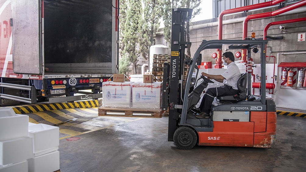 Esta partida forma parte de las 300 mil dosis enviadas desde Rusia al país a fines del mes pasado, que empezaron a ser aplicadas al personal de salud, de entre 18 y 59 años, que trabaja en terapia intensiva y en laboratorios de microbiología de los grandes aglomerados urbanos de las 24 jurisdicciones del país. El Gobierno tiene puesto su esfuerzo y expectativa en avanzar rápido con la vacunación, además de profundizar una campaña de concientización en las redes sociales y en los lugares de veraneo, ante el aumento de casos de los últimos días en el AMBA, en varios distritos del interior del país y en comunas de la provincia de Buenos Aires. El mes pasado, el presidente Alberto Fernández prorrogó el Distanciamiento Social, Preventivo y Obligatorio (Dispo) hasta fines de enero, pero el crecimiento de los contagios de Covid-19 obligó en los últimos días a volver a las restricciones en algunos distritos. El operativo de distribución cuenta con un "sistema de seguimiento en tiempo real", coordinado por el Ministerio de Seguridad. El operativo de distribución cuenta con un "sistema de seguimiento en tiempo real", coordinado por el Ministerio de Seguridad. El plan de inmunización, en esta primera instancia, está dirigido a los ámbitos y lugares "donde tuvo mayor impacto la pandemia y donde hay más riesgos de una segunda ola", explicó hoy la secretaria de Acceso a la Salud, Carla Vizzotti. "Se estima que al término de esta semana ya estarán disponibles en todo el país", informó el Ministerio de Salud a través de un comunicado, en el marco de un esquema que se inició el 29 de diciembre último y que establece un reparto "proporcional" a la cantidad de personas con prioridad en esta etapa, que hasta ahora ya vacunó a 52.195 trabajadores de la salud. El operativo de distribución cuenta con un "sistema de seguimiento en tiempo real", coordinado por el Ministerio de Seguridad. Revertir el relajamiento En los últimos días, con el Presidente a la cabeza, el Gobierno redobló sus mensajes a la población para que mantenga las prácticas de cuidado y cumpla con los protocolos establecidos frente a la pandemia de coronavirus. Tanto en entrevistas con medios periodísticos que brindó el Presidente, como en la campaña publicitaria que su gestión lanzó en las redes sociales, el objetivo de las autoridades nacionales apunta a revertir cierto "relajamiento" observado en la población con la llegada de las fiestas de fin de año y los meses de verano. El jefe de Gabinete, Santiago Cafiero; Kicillof y la mayoría de los mandatarios provinciales se sumaron también a las advertencias expresadas por Fernández y por Ginés González García. Hoy, en el reporte nacional, Vizzotti pidió "prestar atención y redoblar los esfuerzos" en los cuidados individuales para "disminuir la transmisión" de la enfermedad, en una época de gran movilidad de personas por el período de vacaciones. A continuación se detalla el total de dosis de vacunas Sputnik V asignado por jurisdicción: 123.000 a Buenos Aires; 23.200 a la Ciudad Autónoma de Buenos Aires; 2.800 a Catamarca; 7.800 a Chaco; 3.000 a Chubut; 22.000 a Córdoba; 6.800 a Corrientes; 10.200 a Entre Ríos; 3.400 a Formosa; 4.600 a Jujuy; 2.200 a La Pampa; 2.600 a La Rioja; 11.00 a Mendoza; y 5.200 a Misiones. Otras 3.600 dosis corresponden a Neuquén; 4.400 a Río Negro; 8.200 a Salta; 4.600 a San Juan; 3.400 a San Luis; 24.000 a Santa Fe; 6.000 a Santiago del Estero; 1.200 a Tierra del Fuego y 11.400 a Tucumán.