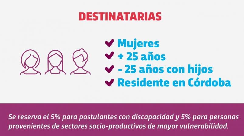 Las beneficiarias se incorporarán mediante entrenamiento laboral a empresas o comercios privados. Se reservará el 5% para postulantes con discapacidad y 5% para personas beneficiarias provenientes de sectores socio-productivos de mayor vulnerabilidad.