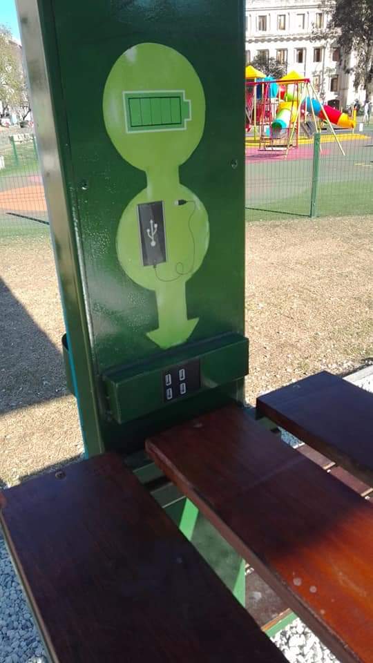 Carezzano "El proyecto prevé que se instalen en todas las plazas o espacios públicos de la ciudad estaciones que dispongan de un termotanque solar para que las personas puedan obtener agua caliente, y paneles solares con conexiones USB donde los vecinos puedan cargar sus celulares u otros aparatos electrónicos"