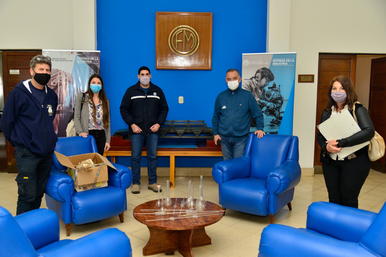Los participantes planificaron los pasos a seguir en lo concerniente al convenio vigente de pasantías que mantienen ambas instituciones. Las mismas comenzaron en el mes de septiembre, extendiéndose hasta el mes de diciembre, y están destinadas a los estudiantes del último año de las orientaciones en Metalmecánica, Química y Electromecánica del mencionado establecimiento escolar. Los pasantes actualmente se desempeñan en los siguientes sectores: • 6 en orientación química • 3 en orientación electromecánica • 2 en orientación mecánica • 2 en orientación electrónica Hasta fin de año las/los pasantes concurrentes serán 46, participando de orientaciones en el Laboratorio de Inspección Química, en el Laboratorio de Metrología y Ensayo de Metales, en el sector de Mantenimiento Industrial Producción Mecánica y en el sector de Instrumentos Mantenimiento Producción Química. En ese marco también se realizó la entrega de distintos tipos de materiales de laboratorio, colaborando así con el equipamiento de la institución educativa, facilitando la realización de trabajos prácticos de los alumnos. La señora directora Silvina Candioti, expresaba al respecto: “…Estamos muy contentos con la apertura de puertas de la Fábrica Militar por las pasantías que realizaremos, tan importantes para la formación de los alumnos y sus prácticas profesionalizantes. La escuela, plantel docente, alumnas/os y familiares, agradecemos infinitamente a la Fábrica Militar y a su director José María López, por la colaboración y entrega de material de vidrio y sustancias de laboratorio, las mismas son valiosísimas para nuestra escuela…” El Esp. Lic. José O. Rosso, jefe de Aseguramiento de Calidad en la Fábrica Militar, quien se encargó de la recolección de los elementos de laboratorio entregados y a su vez recibirá pasantes en su sector a lo largo de estos meses, así lo definía: “…Desde una perspectiva social, volver a tener pasantes pone de manifiesto el compromiso para con la educación y la comunidad en general que tiene FMRT. Las pasantías forman parte de nuestra esencia, nos enorgullece asumir la responsabilidad de contribuir para una mejor educación y preparación de nuestros jóvenes. Estamos convencidos de que debemos avanzar tejiendo redes y generando vínculos, en ese sentido, los lasos con las instituciones educativas juegan un rol fundamental…” En esta senda, FMRT continúa contribuyendo con el desarrollo de toda la comunidad riotercerense. Fabricaciones Militares Sociedad del Estado