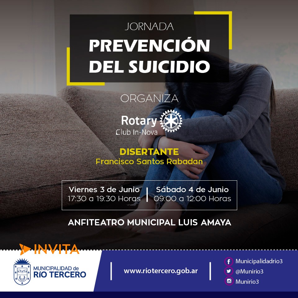 Hoy a las 15 se realizará la primera jornada de Prevención del Suicidio organizada en el marco de un trabajo conjunto entre la Defensoría de Niñas, Niños y Adolescentes, la Municipalidad, Devenir Salud y Rotary In Nova.
