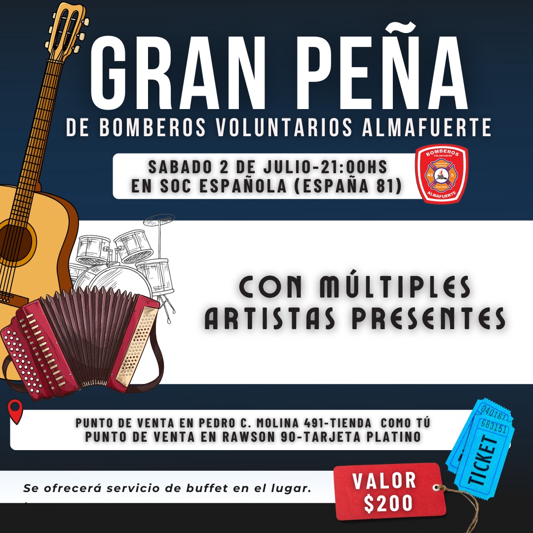 Se trata de la segunda edición de la peña, que en esta ocasión se realizará en las instalaciones de la Sociedad Española, el día sábado a partir de las 21 30. Así lo manifestó a Estación Urbana Valeria Pariani, secretaria de la comisión directiva de la institución, quien además nos comentó que el dinero que se recaude se utilizará para la finalización de la obra de ampliación de los vestuarios y sanitarios del cuartel.