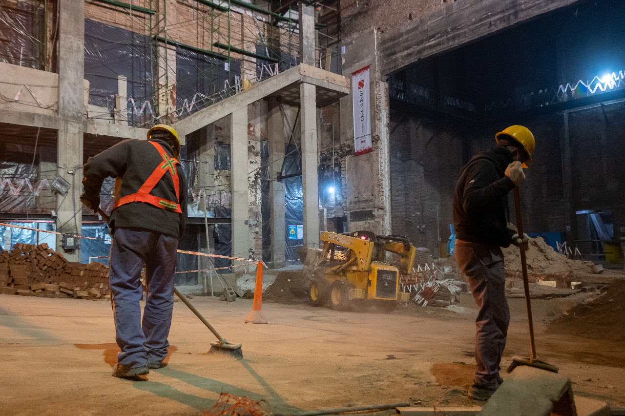 Entre las múltiples tareas que se llevan a cabo para la renovación integral del edificio se incluyen cerramientos, la colocación de venecitas en diferentes sectores del edificio y las instalaciones eléctricas, sanitarias y de cloacas.