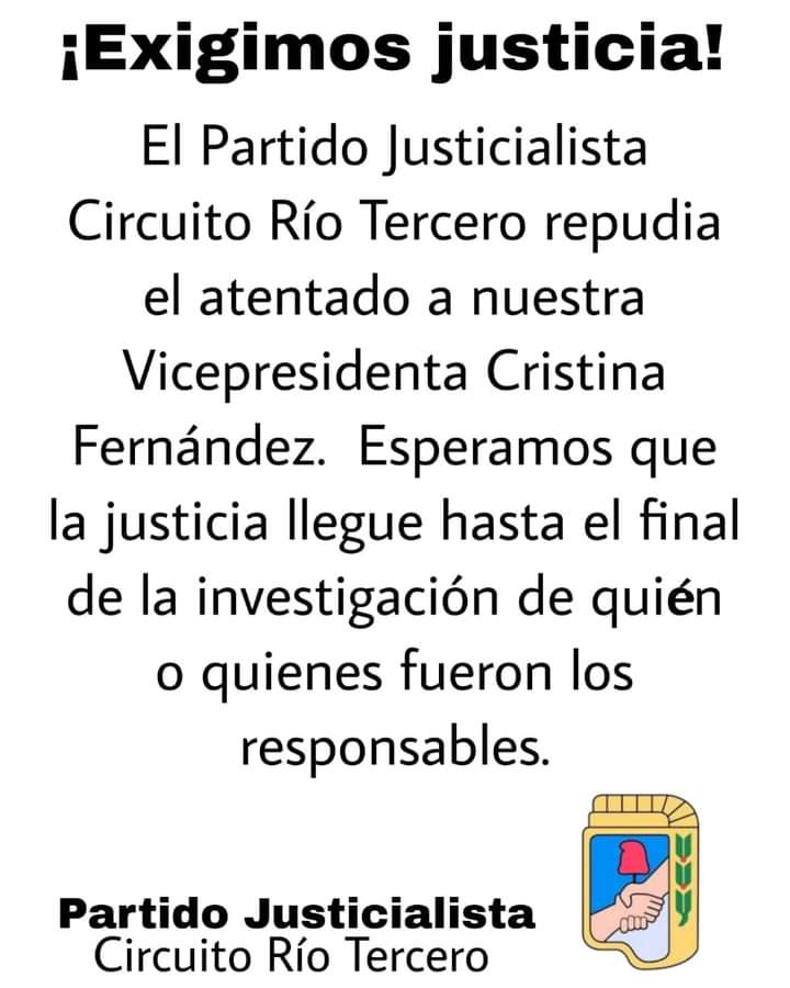 También Mengo señaló que es cierto que "hay discurso de odio y un clima social que se agrava por la situación económica y hubo comentarios desafortunados desde dirigentes del oficialismo y la oposición", agregando que "deberían tener momentos de más calma y evitar enfrentamientos en la sociedad". Finalmente el dirigente justicialista se refirió a la concentración que se realizará en la tarde de hoy en plaza San Martín en repudio a lo sucedido.